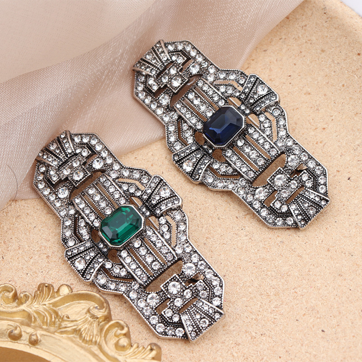 Color: Green diamond brooch, blue diamond brooch