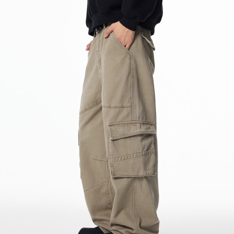 Loose Straight-leg Casual Pants, Autumn American Retro Multi-pocket