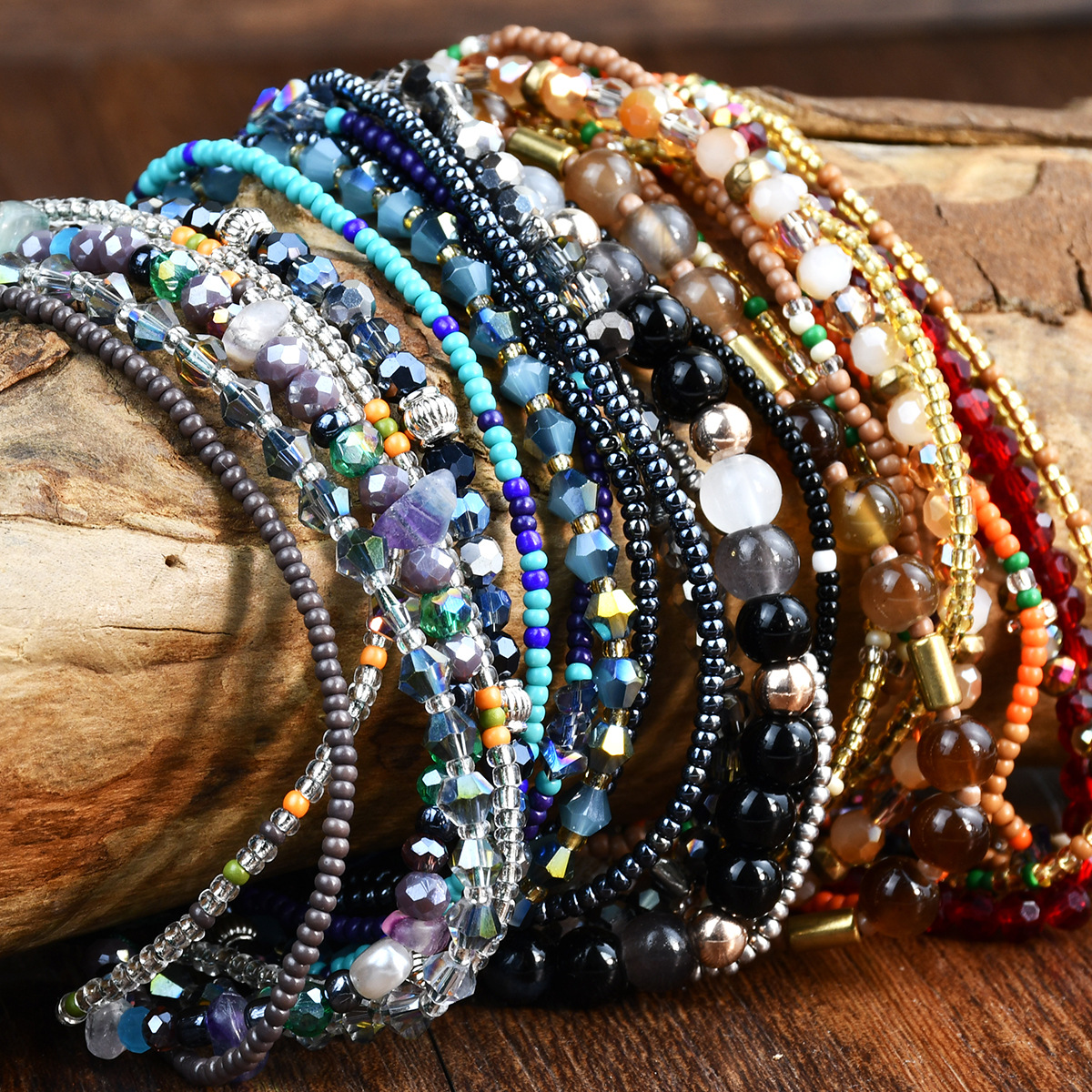 Material: Natural gravel + millet beads + crystal + braided rope
