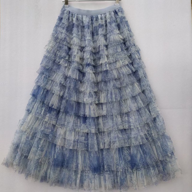 Plus-size Women's Mid-length Tie-dye Ink Print Mesh Skirt