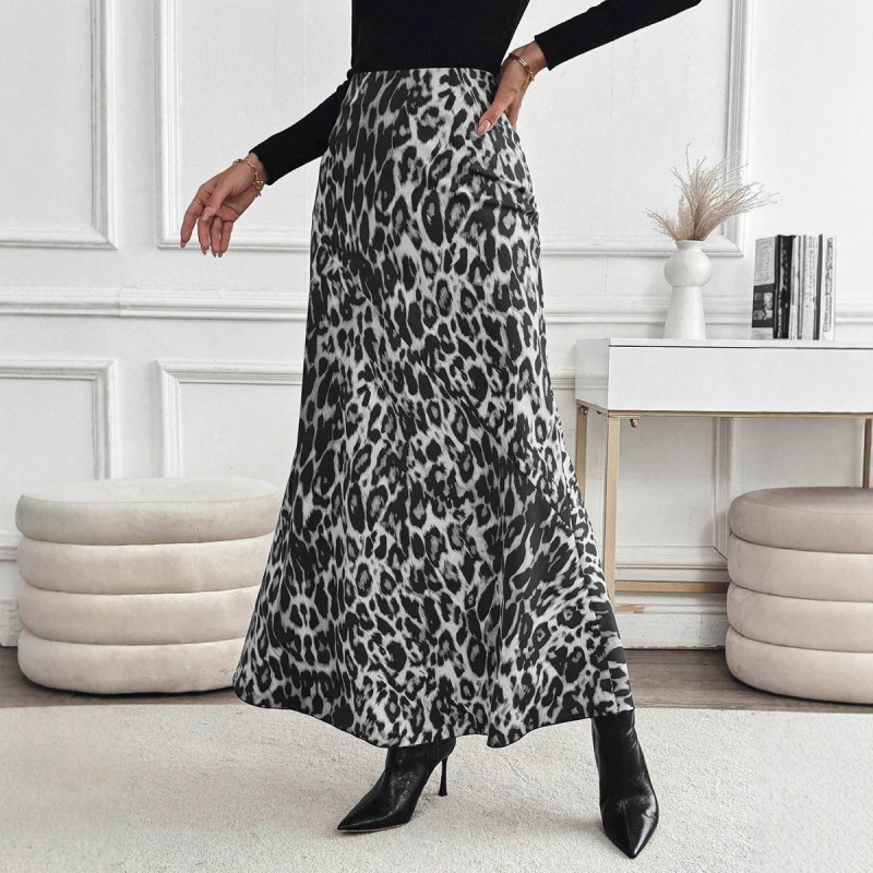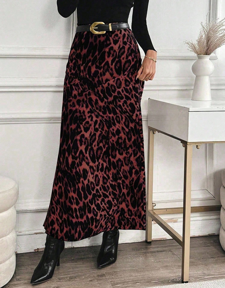 Slimming Leopard Print Skirt High-waisted Loose Long Dress With Print
