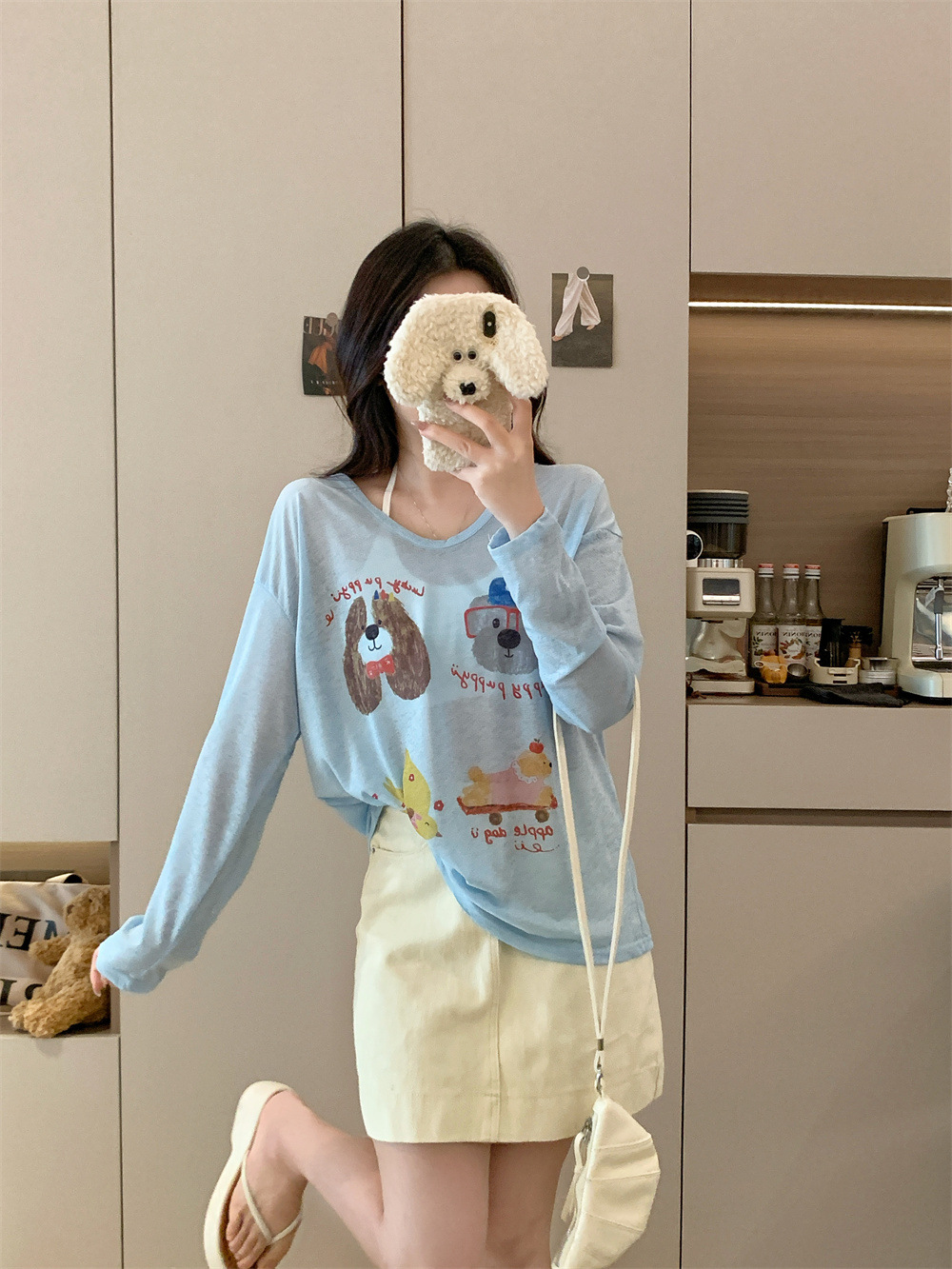 Loose Summer Blouse With Puppy Print Thin And Sun-protective