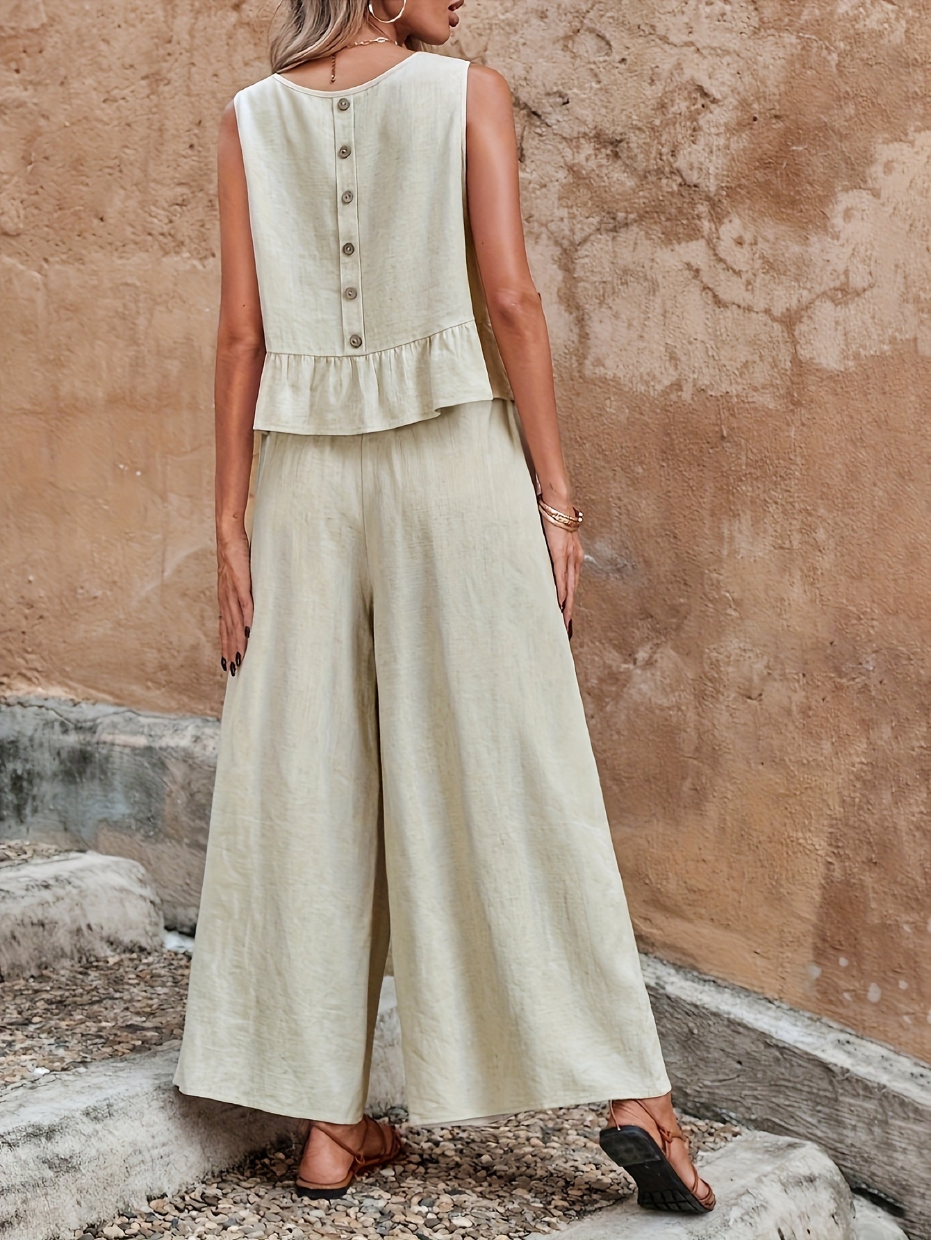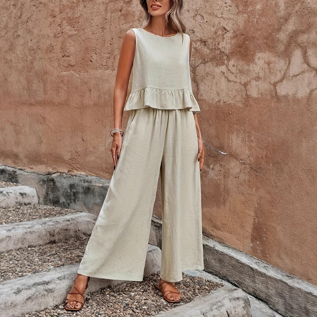 Women's Solid Color Ruffle Strap Tank Top Wide Leg Pants Set