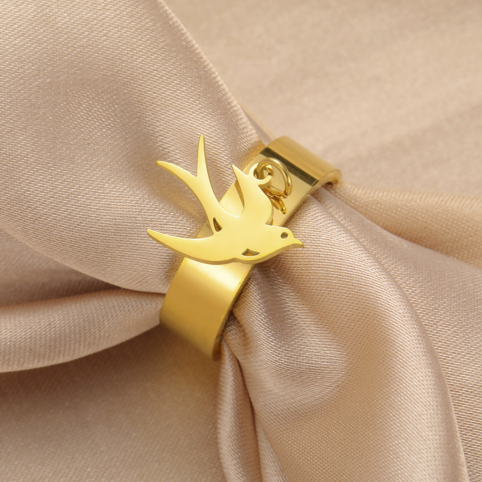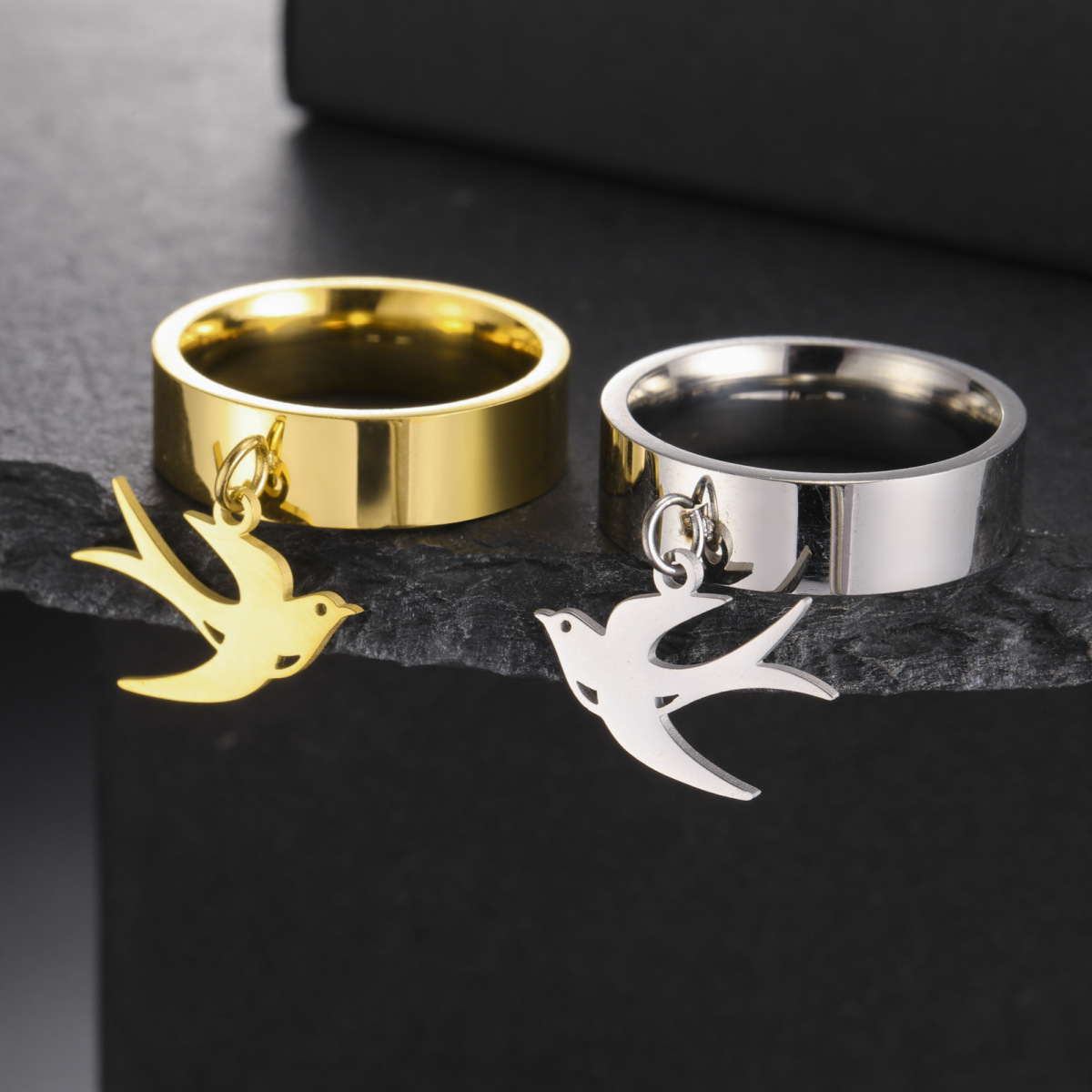 Style: European and American fashion niche design titanium steel cut swallow ring