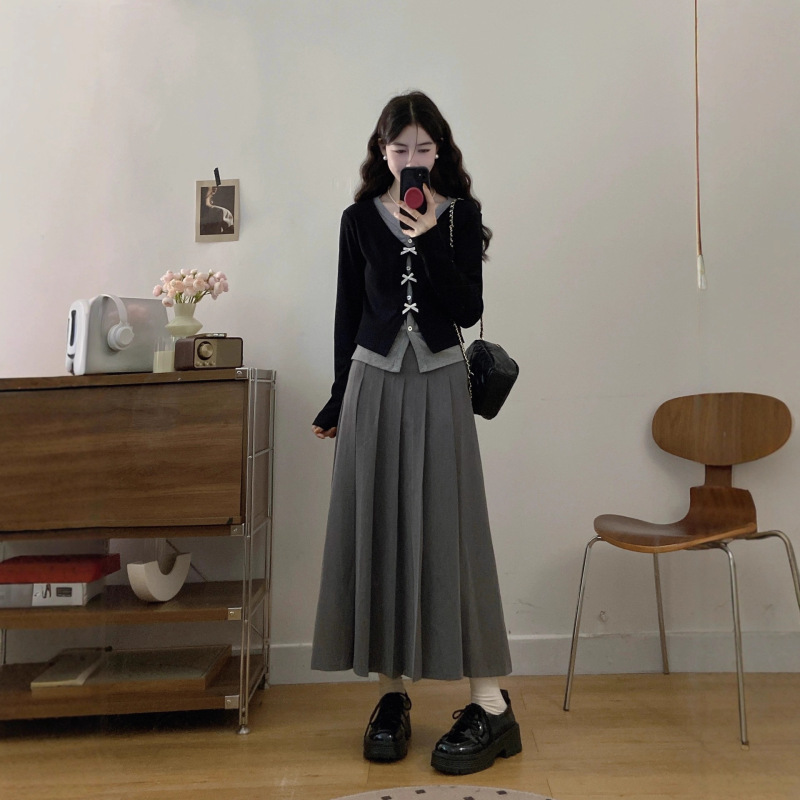 High-end Fake Two-piece Shirt Slimming Skirt Two-piece Set