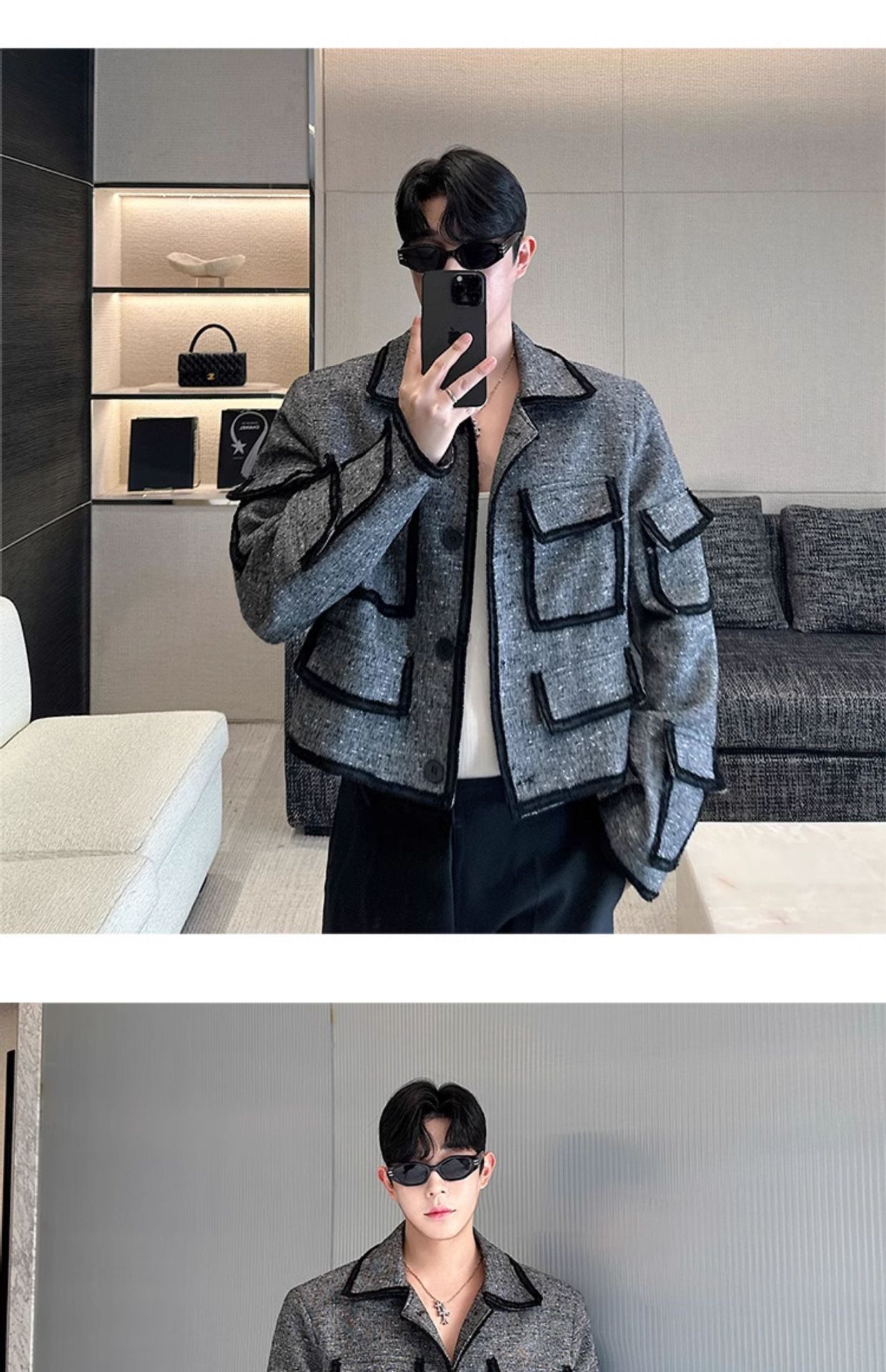 French Niche Multi-pocket Decorative Short Jacket Men's Coat