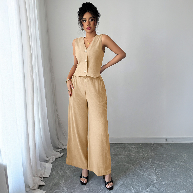 Simple Sleeveless Wide-leg Pants Two-piece Set For Women