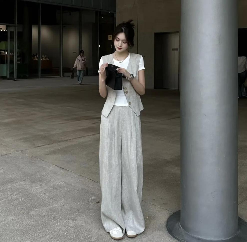 New Temperament Vest Short Jacket Top Casual Straight Wide-leg Pants