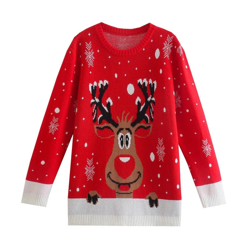 Round Neck Wide Jacquard Long Sleeve Sweater Women
