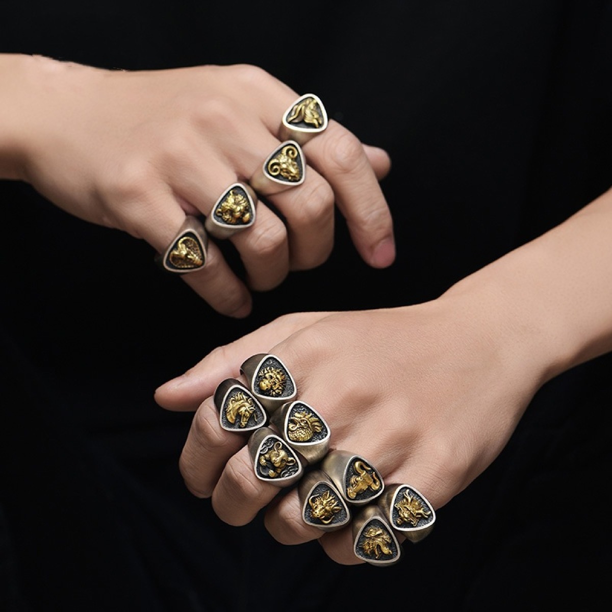 3D Zodiac Sign Ring For Men's Birth Year Original Design
