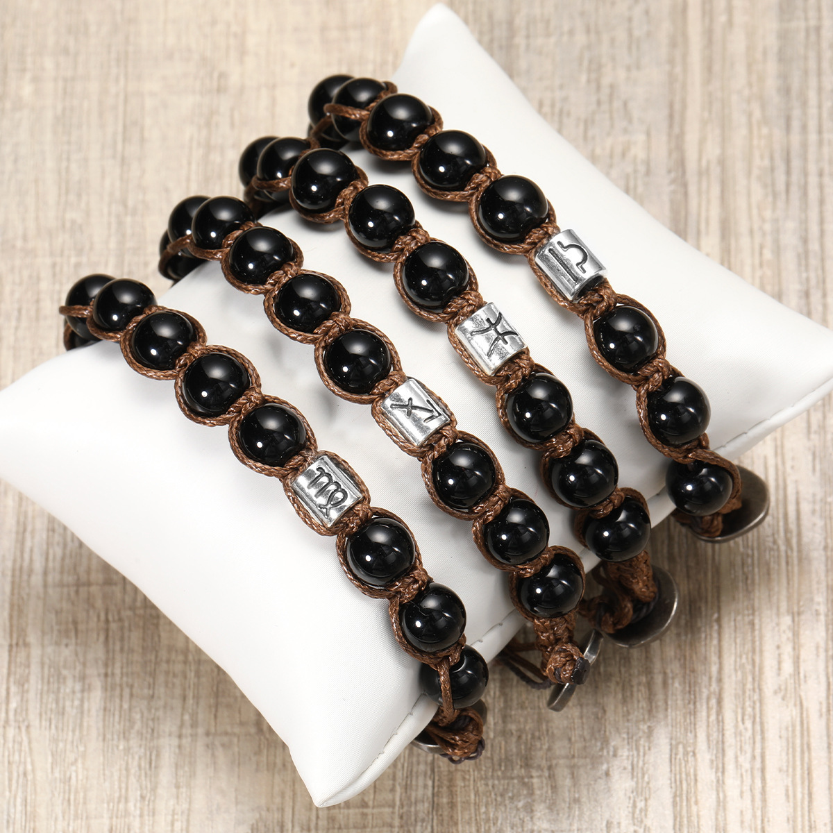 Natural Stone 12 Zodiac Obsidian Hand-woven Bracelet Accessories Stainless Steel Taurus