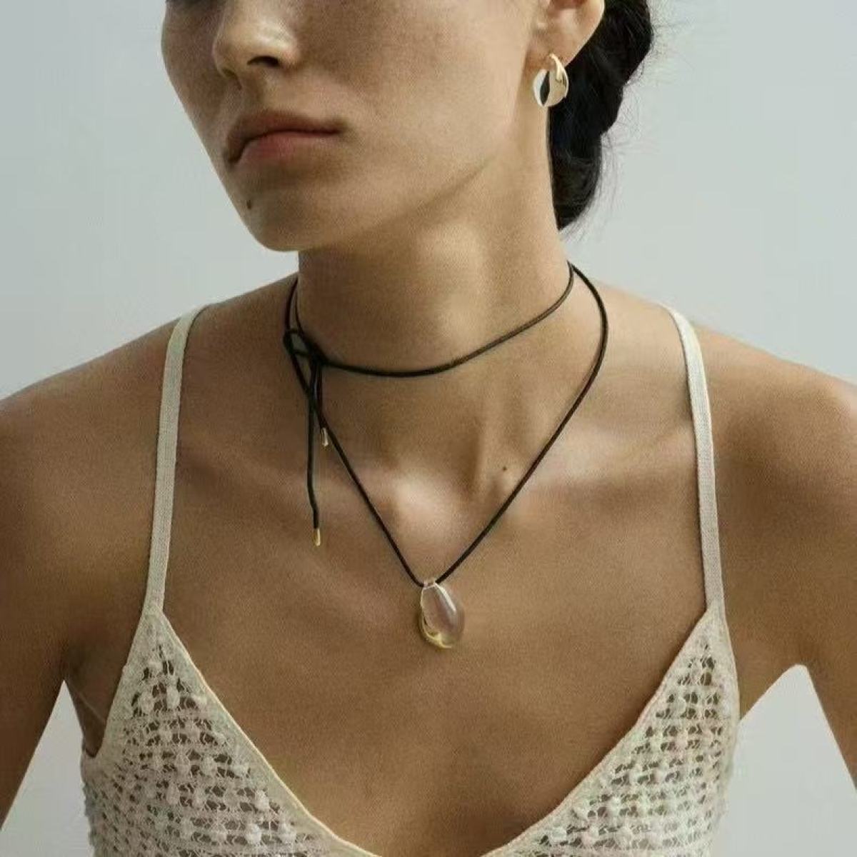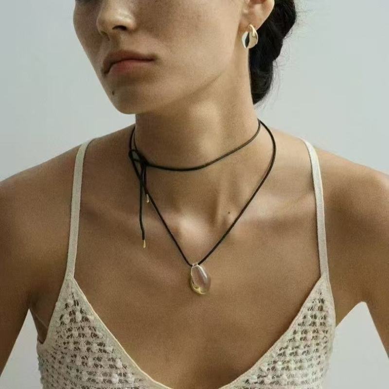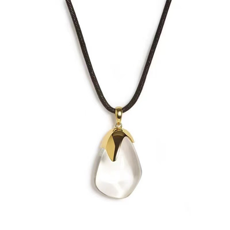 Pendant material: Brass electroplated 18K gold/white crystal Korean wax thread