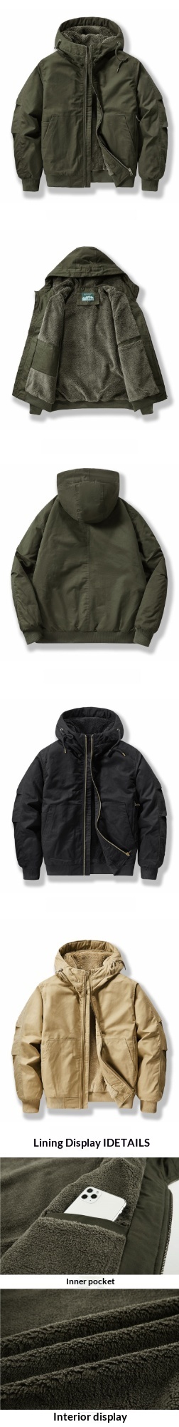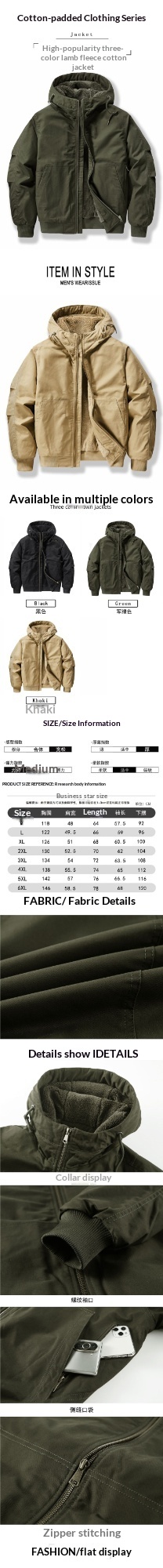 Colors: Army green, black, khaki