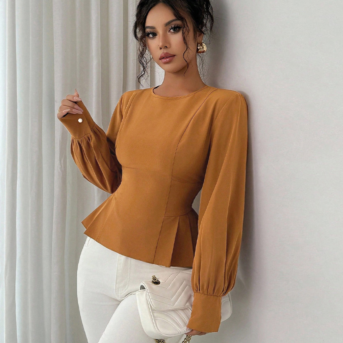 Trendy Elements: Solid color, cinched waist design, patchwork, pleats
