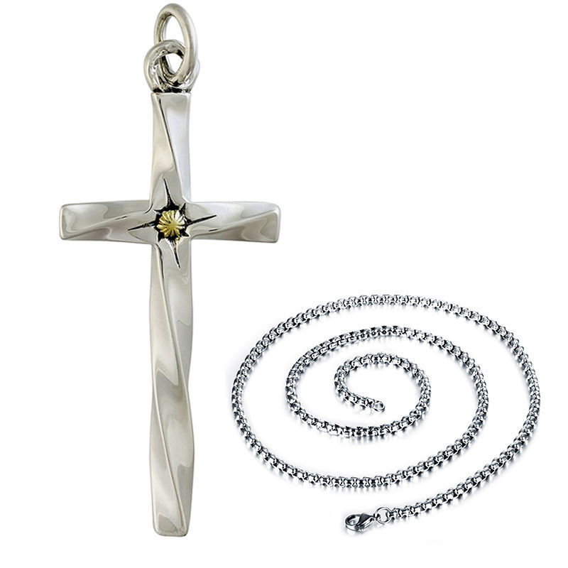 Color: Gold Aurora Cross Single Pendant, Gold Aurora Cross Pendant with 60 cm Pearl Chain