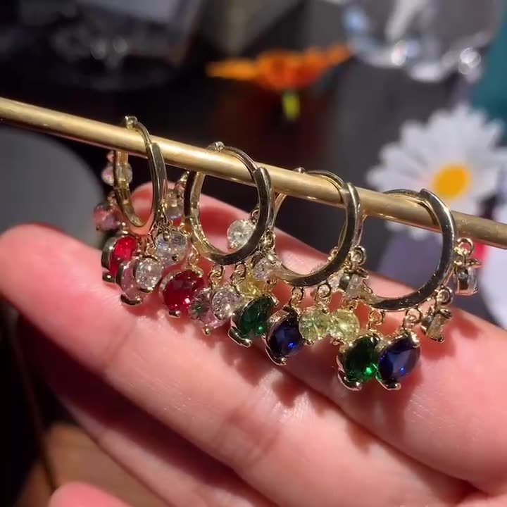 Colors: D0027 White Zircon—Gold, D0028 White Zircon—Silver, D0029 Pink—White Zircon—Gold, D0030 Blue—Green Zircon—Gold, D0031 Pink—Purple Zircon—Gold