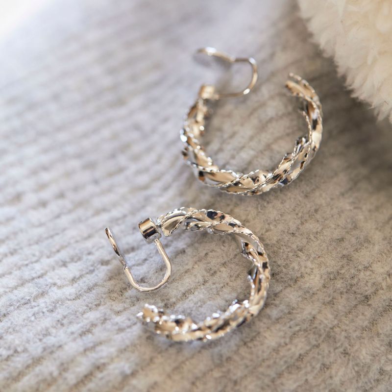 Colors: A pair of silver stud earrings, a pair of silver clip-on earrings, a pair of gold stud earrings, a pair of gold clip-on earrings