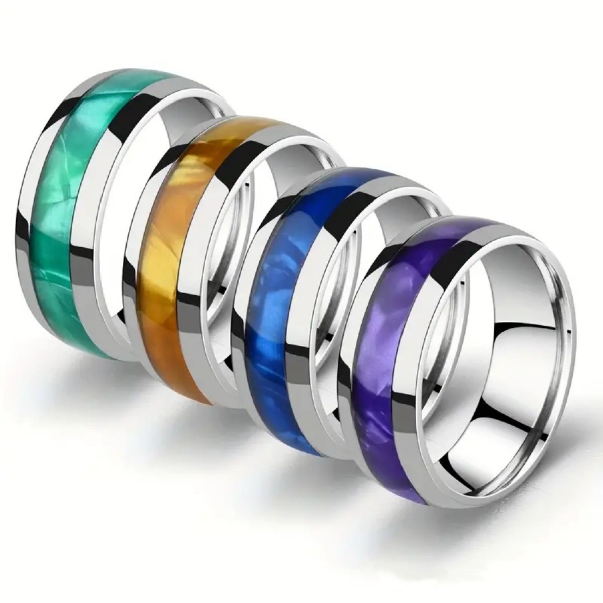 Men's 8mm Curved Surface Sticker Stainless Steel Ring