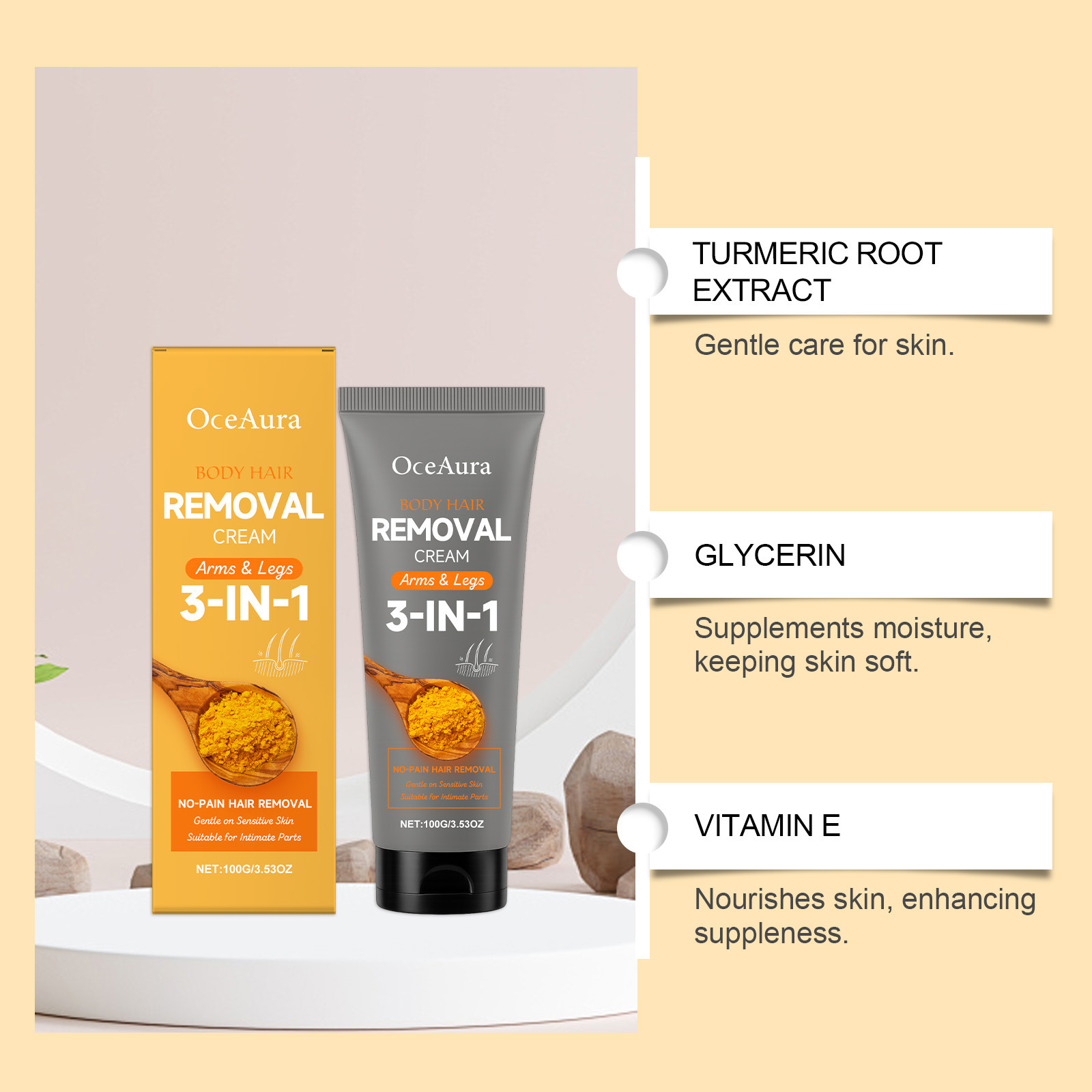 Ingredients: water, glycerol, caprylic/capric triglyceride, calcium thioacetate, panthenol, petrolatum, glyceryl stearate, shea butter, potassium hydroxide, 1,2- hexanediol, carbomer, arginine, tocopherol (vitamin E), ginger root extract, and ascorbic acid (vitamin C).
