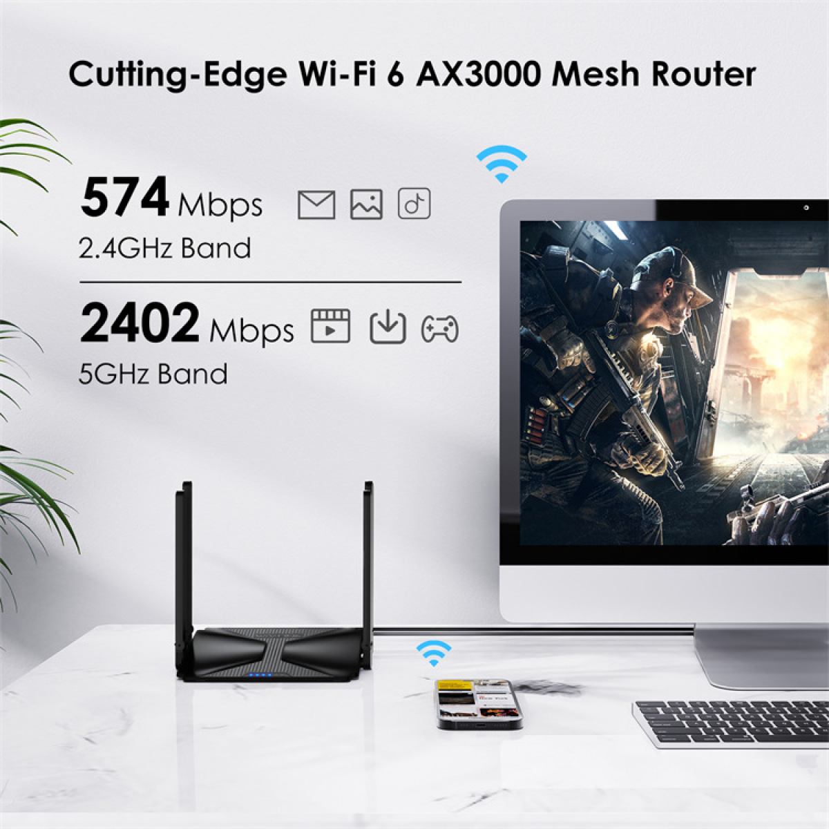 AX3000 Dual-Band Gigabit Mesh Wireless Wi-Fi 6 Router With 5dBi High-Gain Four-Antenna Design