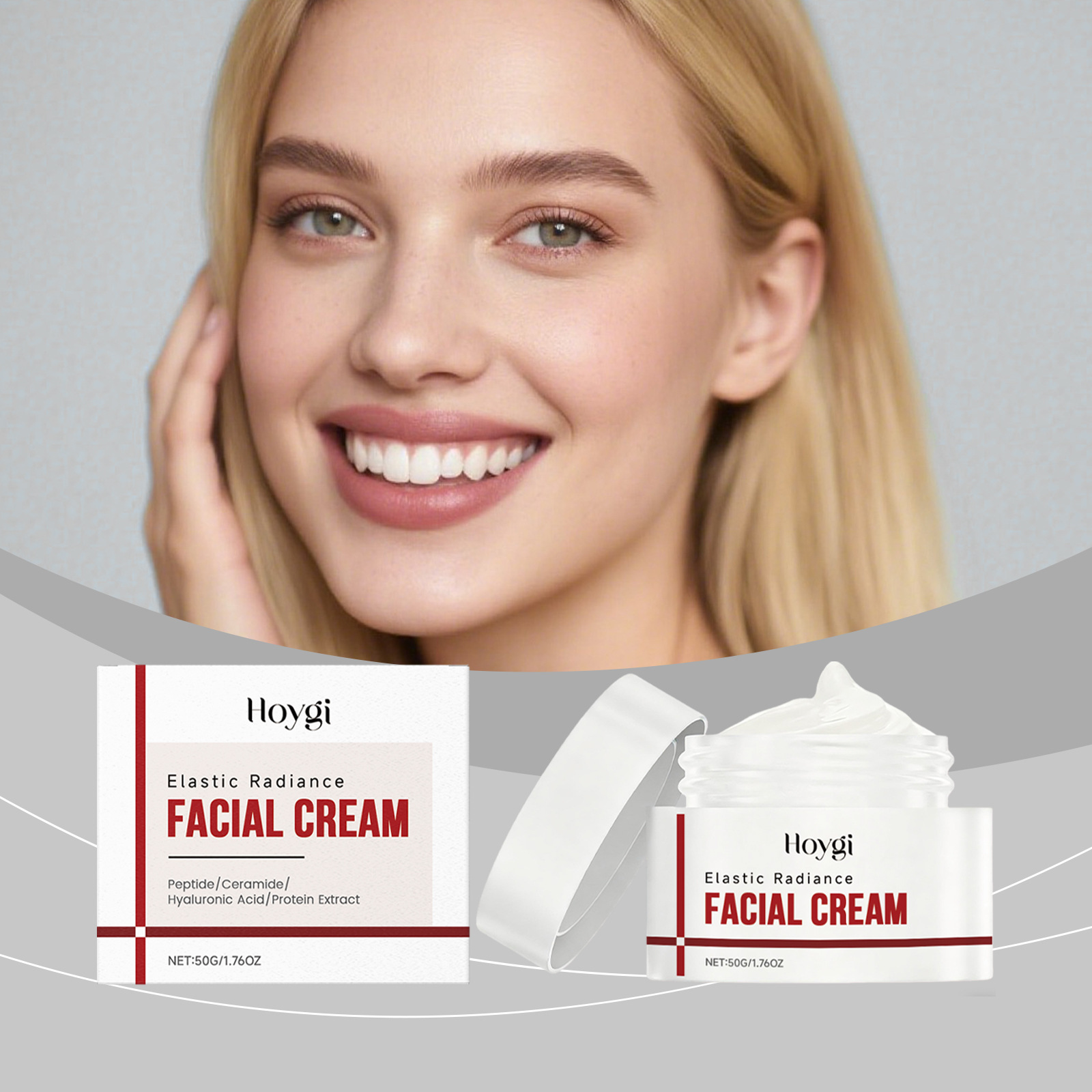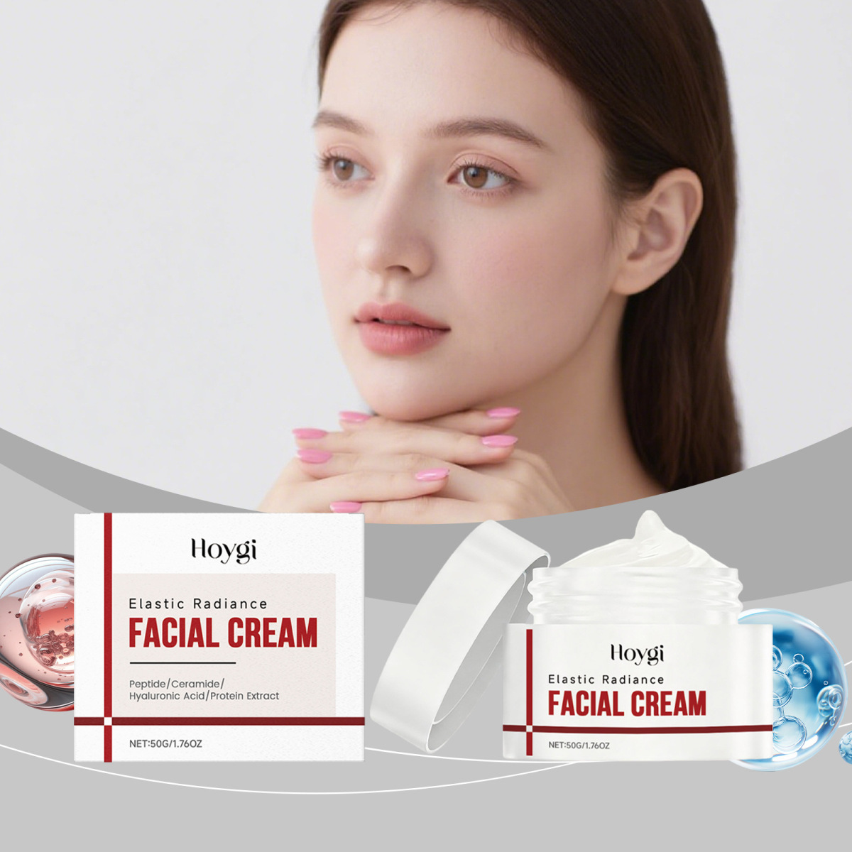 Ingredients: water, mineral oil, glycerin, glyceryl stearate, 1,2- hexanediol, carbomer, arginine, copper tripeptide -1, ceramide NP, hyaluronic acid, hydrolyzed collagen.