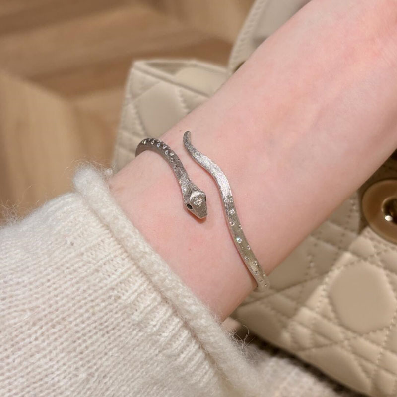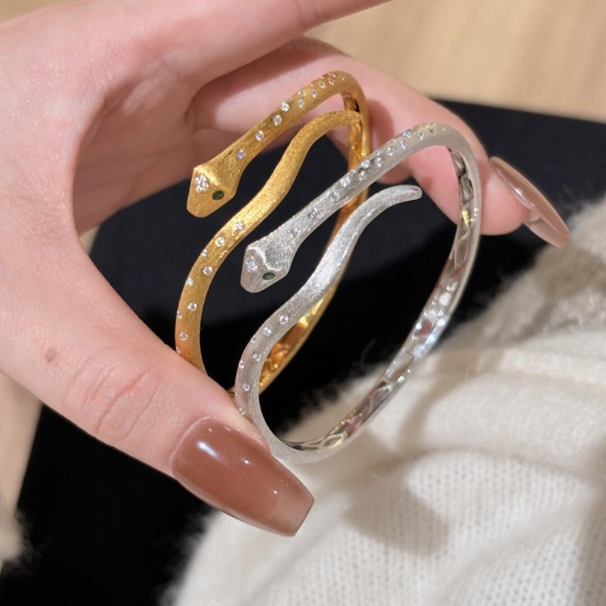 Colors: Gold brushed finish with diamond-encrusted snake bracelet, silver brushed finish with diamond-encrusted snake bracelet