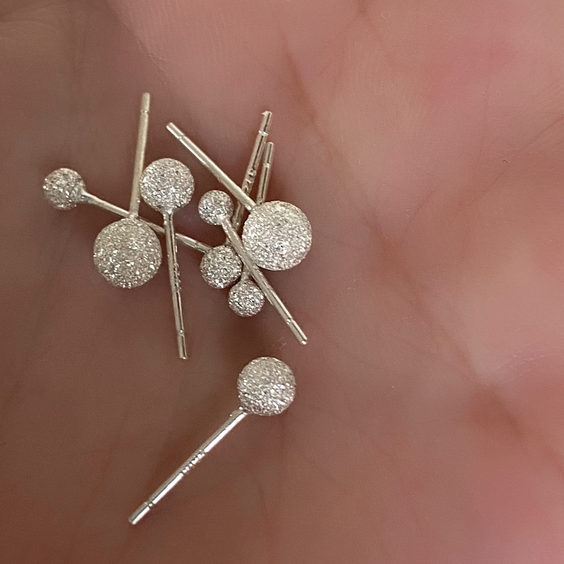 S925 Silver Needle Small Round Bead Polished Matte Stud Earrings