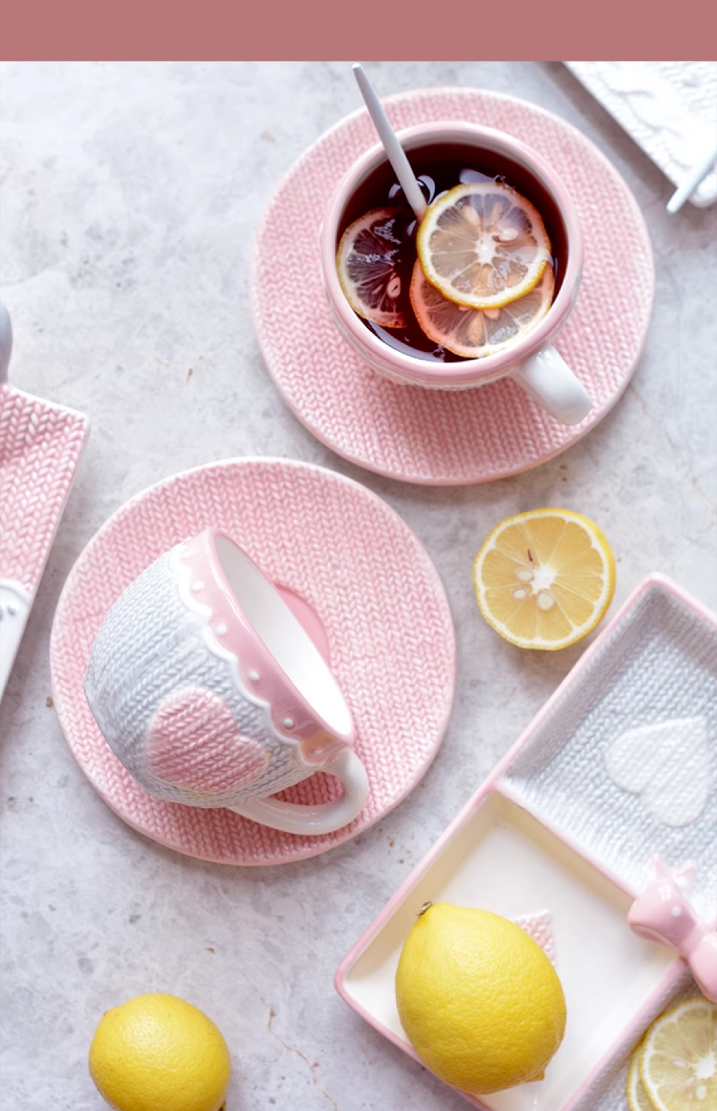Colors: Small heart-shaped tray, medium heart-shaped tray, large heart-shaped tray, small gift box tray, medium gift box tray, small gray heart-shaped basket, multi-compartment tray, small pink heart-shaped basket; free shipping on any two items; hand sanitizer bottle; coffee cup and saucer; round tray; mug.