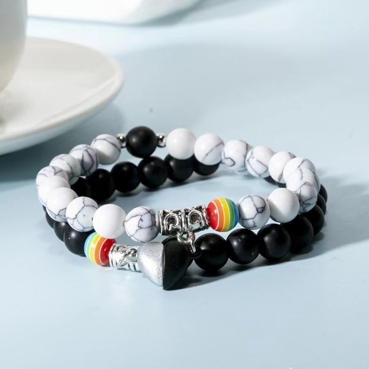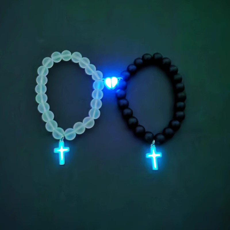Colors: Rainbow (black and white heart) — pair, Crown (luminous heart bracelet) — pair, Luminous cross bracelet (no magnet) — pair, Luminous stars and moon (heart magnet) bracelet — pair, Luminous cross (heart magnet) bracelet — pair, Dinosaur (luminous heart bracelet) — pair, Luminous (blue) bead bracelet, Luminous (green) bead bracelet