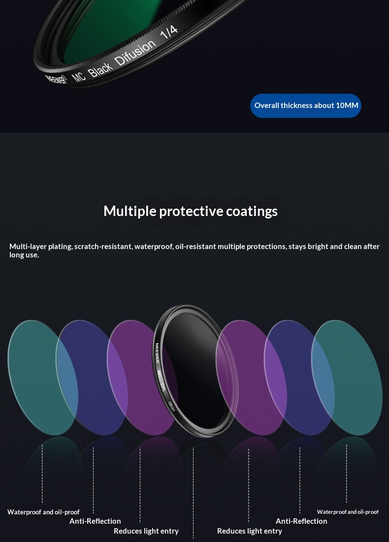 Colors: 58mm CPL + 1/4 ND soft-focus dual filter kit, 67mm CPL + 1/4 ND soft-focus dual filter kit, 72mm CPL + 1/4 ND soft-focus dual filter kit, 77mm CPL + 1/4 ND soft-focus dual filter kit, 82mm CPL + 1/4 ND soft-focus dual filter kit