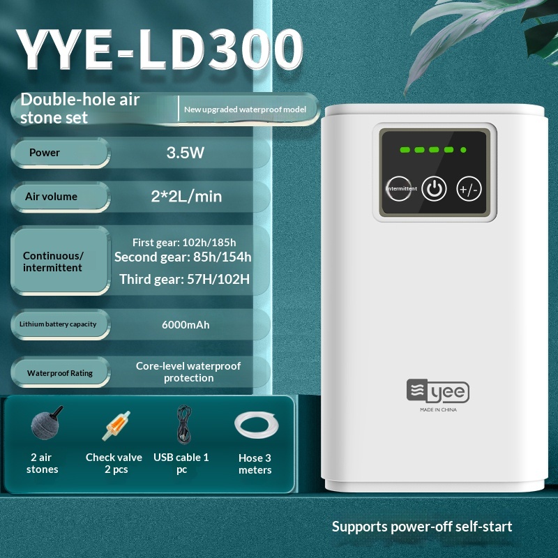 Specifications: Continuous operation for 102 hours / Dual-hole air stone kit [with built-in core waterproof technology, battery life up to 185 hours]; Continuous operation for 102 hours / Dual-hole air disk kit [with built-in core waterproof technology, battery life up to 185 hours]; Continuous operation for 102 hours / Dual-hole air disk kit [with built-in core waterproof technology, battery life up to 185 hours]; Continuous operation for 102 hours / Dual-hole air disk kit [with built-in core waterproof technology, battery life up to 185 hours]; Intermittent use duration of 40 hours / Dual-hole air stone kit; Intermittent use duration of 40 hours / Dual-hole air disk kit