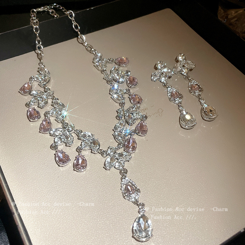 Color: Necklace—silver-pink, Earrings—silver-pink