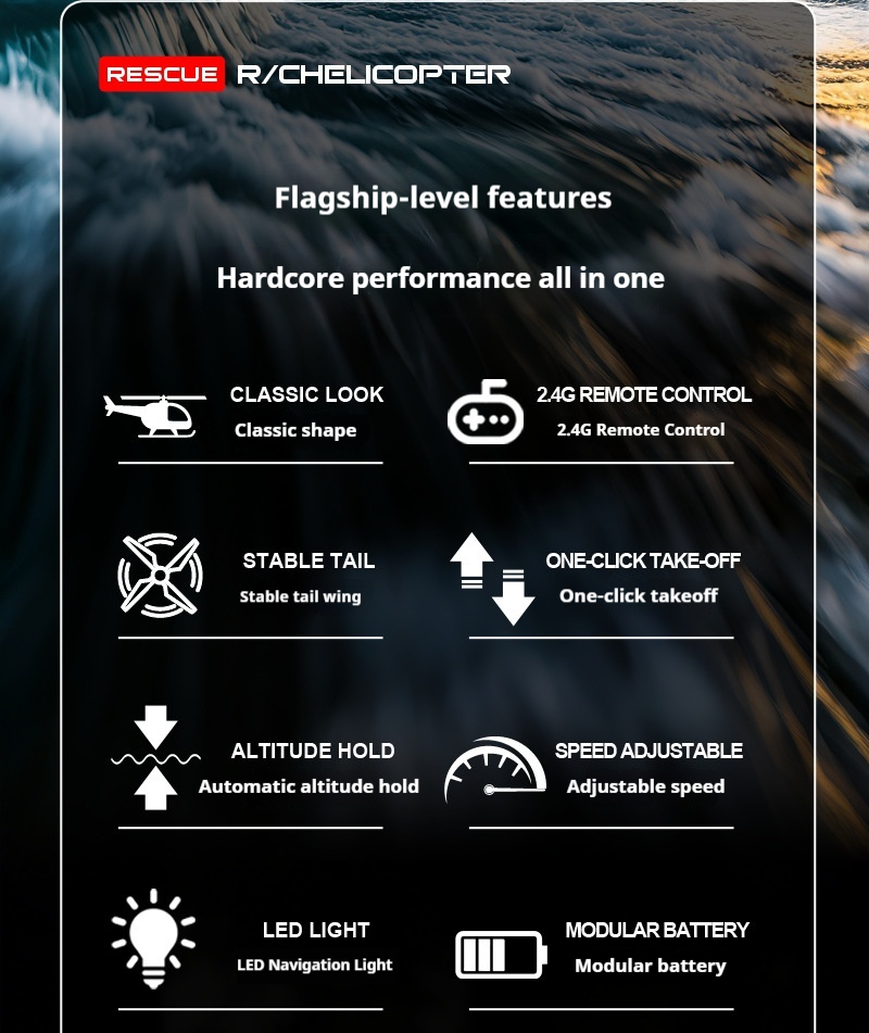 Special Features: Navigation lights, USB charging, drop-resistant, forward flight, remote control with handle, backward flight, hovering, 3D flips, impact-resistant, leftward flight, rightward flight, barometric altitude hold, one-button takeoff and landing, durable rotor blades