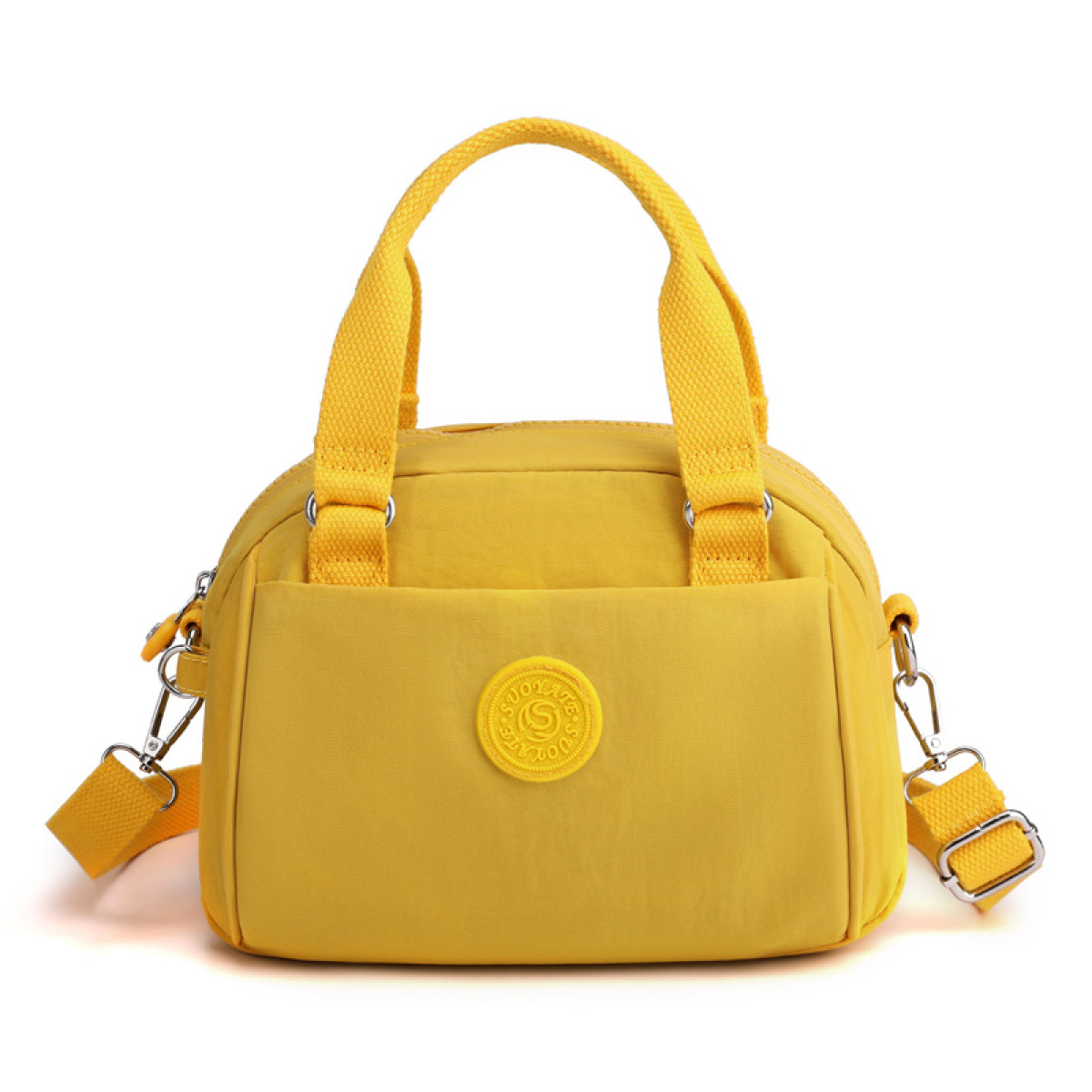 Colors: yellow, black, orange, aqua blue, khaki with lettering, happy flower, pink plaid, blue-and-white floral print