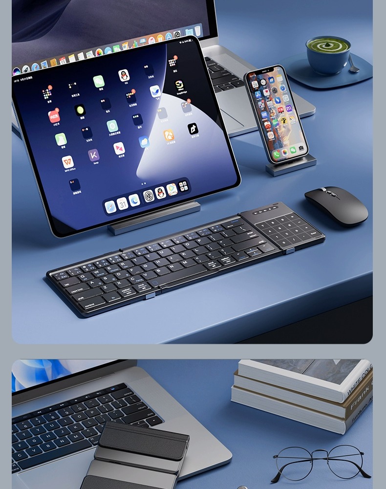 Colors: Black tri-fold [Single Keyboard], Silver tri-fold [Single Keyboard], Black tri-fold [Single Keyboard] CNC-machined unibody, Silver tri-fold [Single Keyboard] CNC-machined unibody, Rose Red [Single Keyboard] CNC-machined unibody, Turkish Blue-Green [Single Keyboard] CNC-machined unibody, Black tri-fold [Keyboard-Mouse Combo], Silver tri-fold [Keyboard-Mouse Combo], Black tri-fold [Keyboard-Mouse Combo] CNC-machined unibody, Silver tri-fold [Keyboard-Mouse Combo] CNC-machined unibody, Silver-Black [Single Keyboard] CNC-machined unibody, Silver-Black [Keyboard-Mouse Combo] CNC-machined unibody