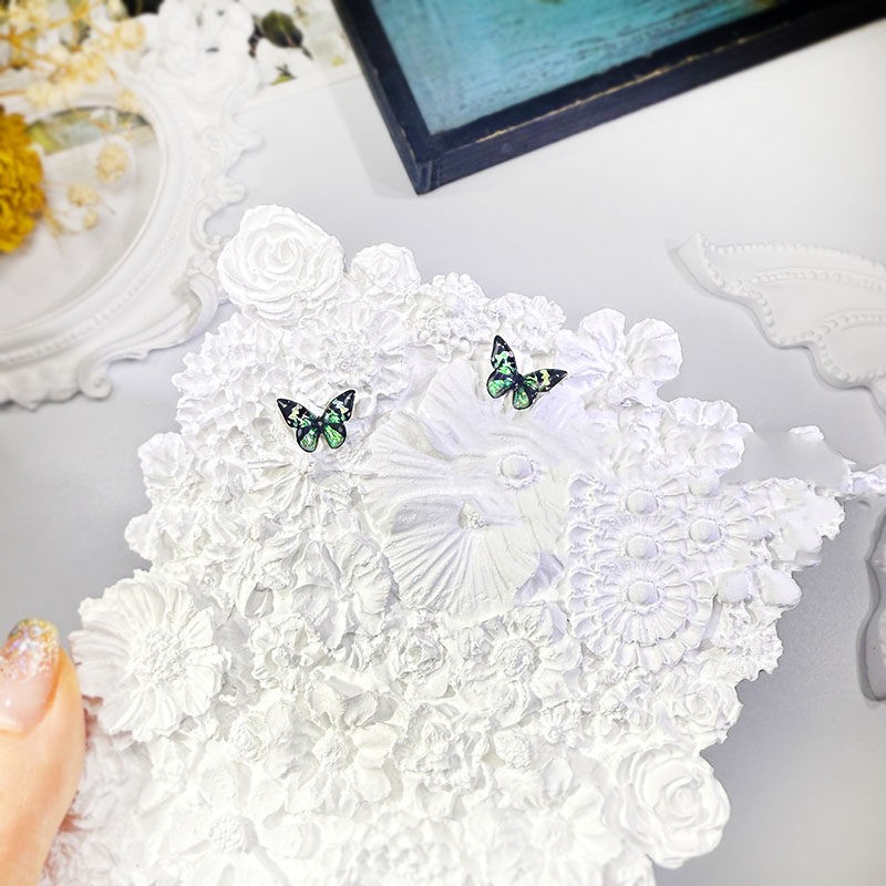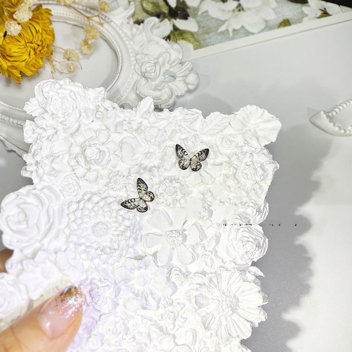 Colors: blue pair (resin ear clips), gray-purple pair (resin ear clips), moonlight white pair (resin ear clips), red pair (resin ear clips), gray-green pair (resin ear clips), orange pair (resin ear clips), retro green pair (resin ear clips), ink-wash butterfly pair (resin ear clips) and black butterfly pair.