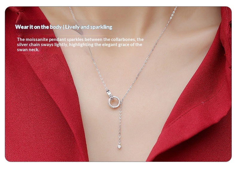 Color: 2mm Linked-Loop Tassel Moissanite Necklace, 2mm Linked-Loop Tassel Moissanite Necklace (Includes Certificate + Gift Box)