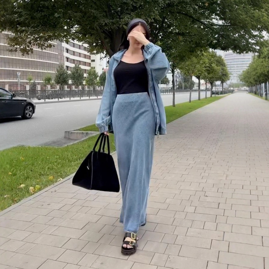 Elegant Commuter Denim Wrap Skirt With A Fitted Waist-cinching Design For Women