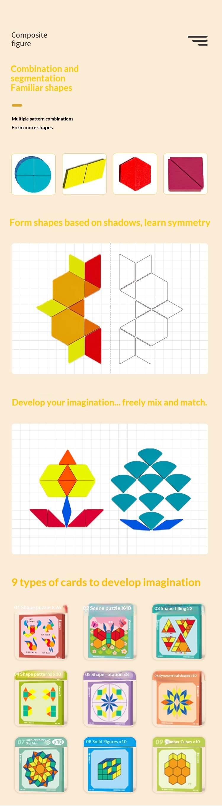 Color: 160-piece magnetic geometric tangram puzzle with 30 double-sided challenge cards