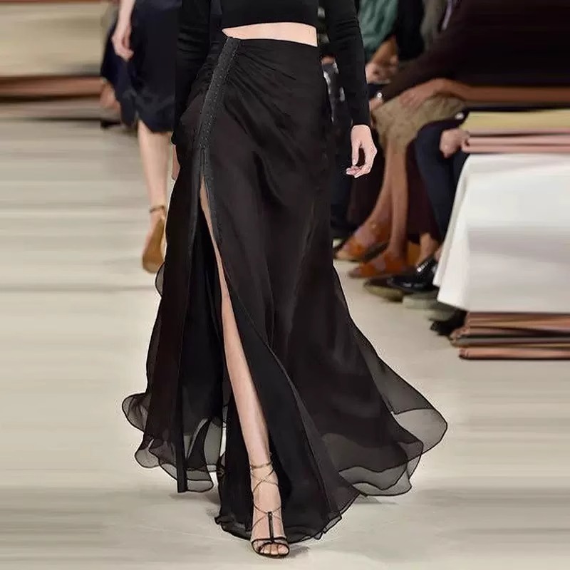 New Summer Design Stylish, Layered Long Skirt With A Slit