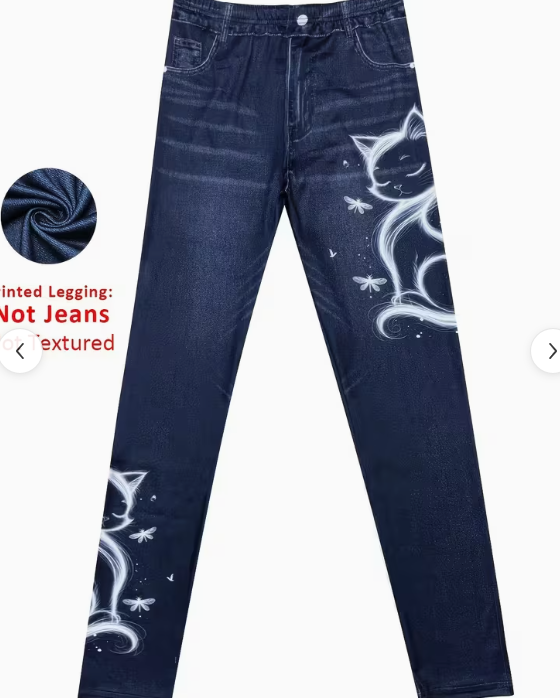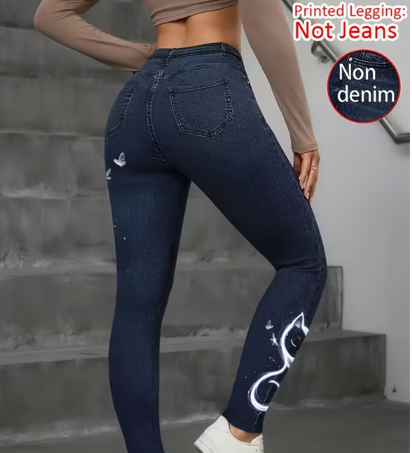 Women's High-Elastic Imitation Denim Leggings With Realistic Denim Print