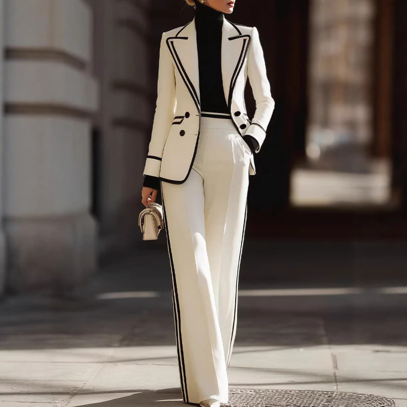 Color: White suit set, blazer, suit pants
