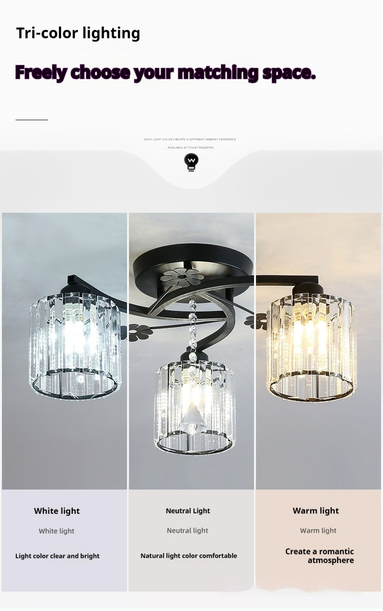 Light Color: Three-head gold 9W white light, total 27W; three-head black 9W white light, total 27W; three-head gold 12W white light, total 36W; three-head black 12W white light, total 36W; three-head gold 12W tri-color light, total 36W; three-head black 12W tri-color light, total 36W; three-head gold 16W white light, total 48W; three-head black 16W white light, total 48W; three-head gold 16W tri-color light, total 48W; three-head black 16W tri-color light, total 48W; three-head gold 20W white light, total 60W; three-head black 20W white light, total 60W; three-head gold 20W tri-color light, total 60W; three-head black 20W tri-color light, total 60W; five-head gold 9W white light, total 45W; five-head black 9W white light, total 45W; five-head gold 12W white light, total 60W; five-head black 12W white light, total 60W; five-head gold 12W tri-color light, total 60W; five-head black 12W tri-color light, total 60W; five-head gold 16W white light, total 80W; five-head black 16W white light, total 80W; five-head gold 16W tri-color light, total 80W; five-head black 16W tri-color light, total 80W; five-head gold 20W white light, total 100W; five-head black 20W white light, total 100W; five-head gold 20W tri-color light, total 100W; five-head black 20W tri-color light, total 100W.
