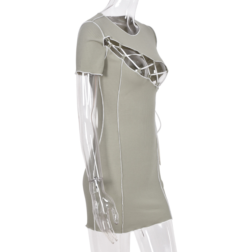 Strappy Cutout Sexy Crew Neck Short Sleeve Pullover Ruffle Hem Bodycon Dress