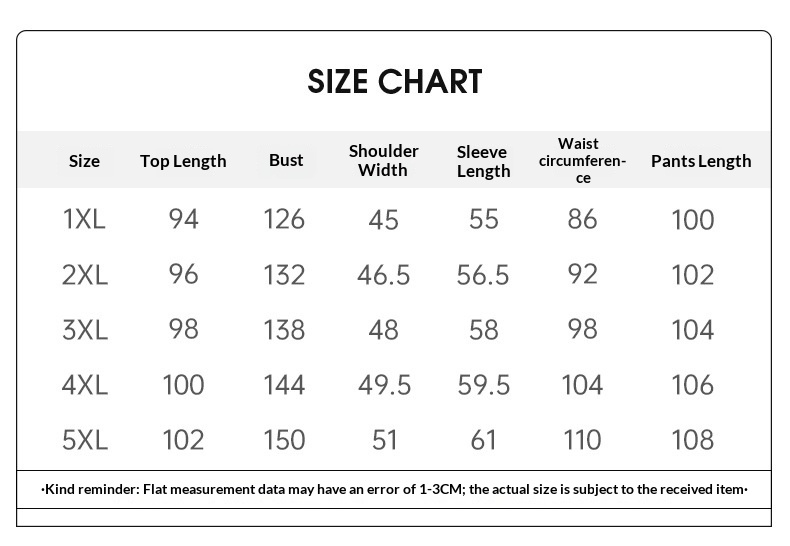 Sizes: 1XL, 2XL, 3XL, 4XL, 5XL