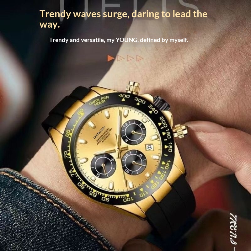 Mechanical-Style Mens Watch With Calenda Quartz Watch