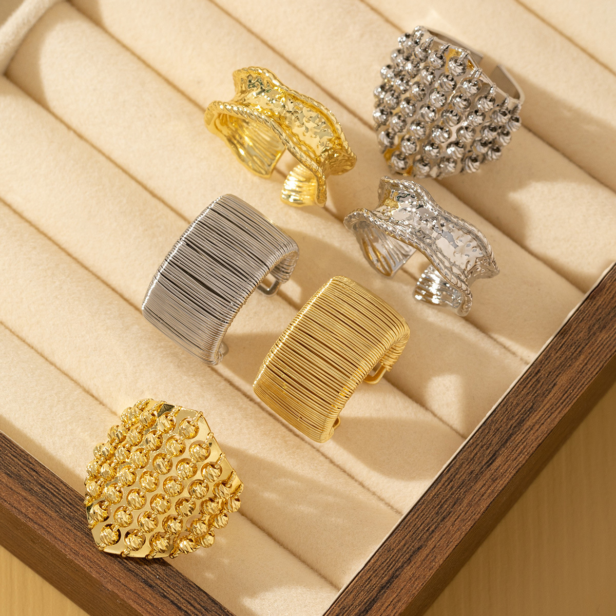 Design: Irregular, geometric, metallic finish