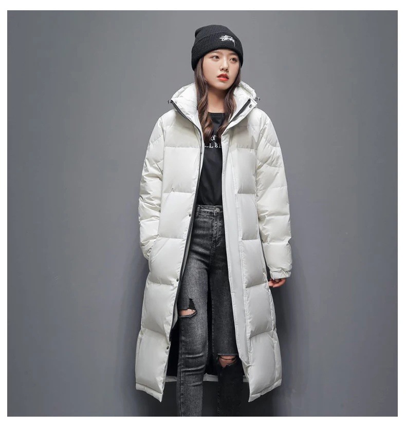 Mens Long Winter White Duck Down Hooded Coat That Goes Below The Knee