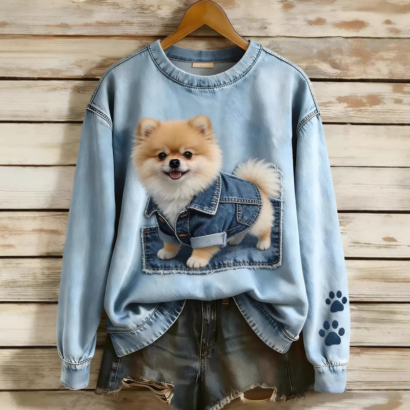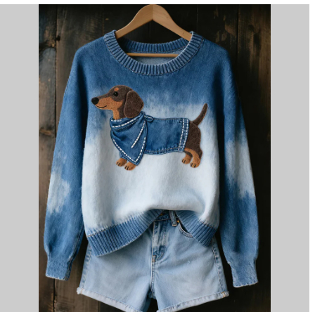 Womens Printed Saint-Like Sweater With A Crew Neck