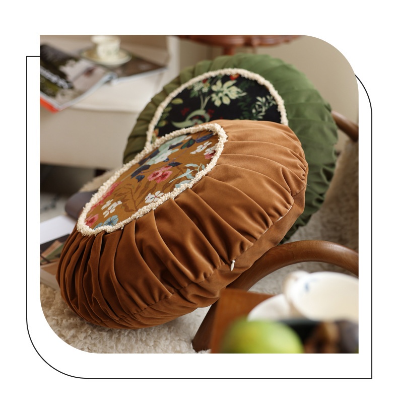 Color: Antique-style round seat cushion [with core], Floral Mirage round seat cushion [with core]